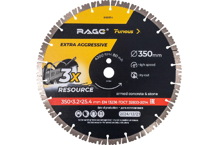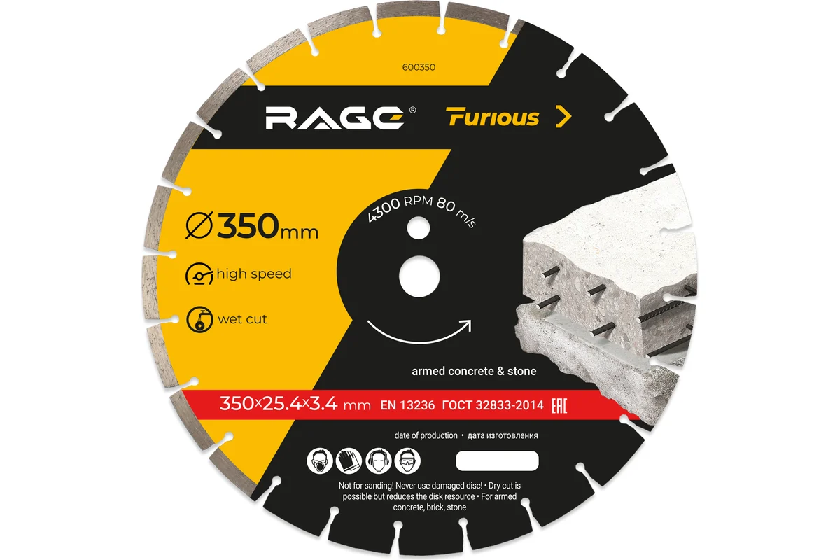 Диск алмазный универс.350*25,4*3,2 сегментный RAGE Furious Aggressive бетон/камень (600354)