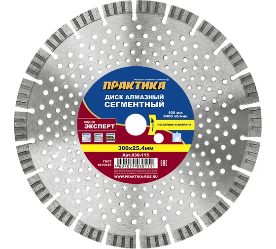 Диск алмазный влажная резка 300*25,4мм по бетону и кирпичу Практика (030-115)