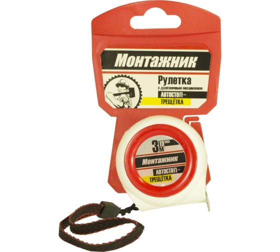 Рулетка 3м *19мм Монтажник с автостопом-трещоткой (604319)