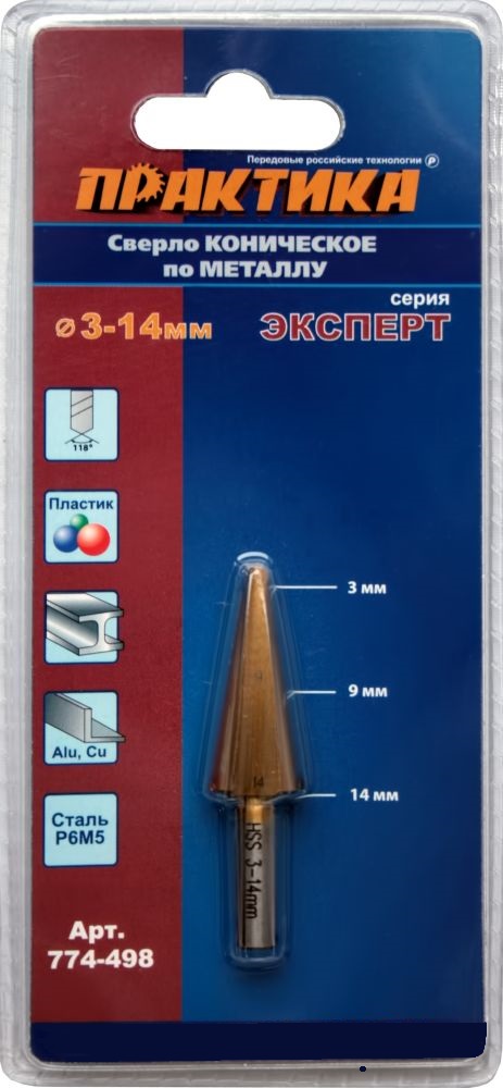 Сверло по металлу конусное 3-14 мм. ПРАКТИКА (774-498) (798-294)